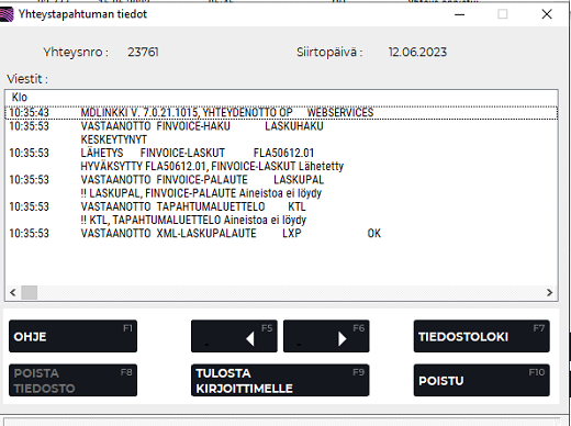 Verkkolaskuaineiston lähetyksen tarkistaminen
