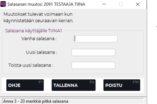 Salasanan muutos -ruutu