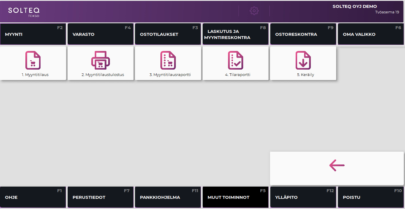 Tekson Myyntitilaustoiminnolla tehdään asiakkaille tarjouksia ja myyntitilauksia. Ennakkoon tehty myyntitilaus voidaan heti tilauksen tallennuksen jälkeen kirjata laskutusmyynniksi tekemällä sille toimitus. Myyntitilaus voidaan toimittaa helposti joko kokonaan tai rivitietojen kautta rivikohtaisesti osissa. Myös kassamyynnissä voidaan kirjata myyntitilauksen toimitus hakemalla asiakkaalle kirjatuista tilauksista tilauksen rivit myyntiin.