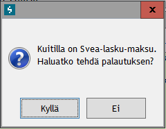 Palautus, kun maksutapana on ollut Svea-lasku/erämaksu