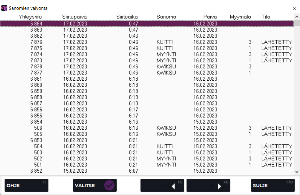 Sanomaloki-toiminnolla voidaan seurata ja lähettää uudelleen ketjunohjaukseen tai päämyymälään lähetettyjä sanomia.