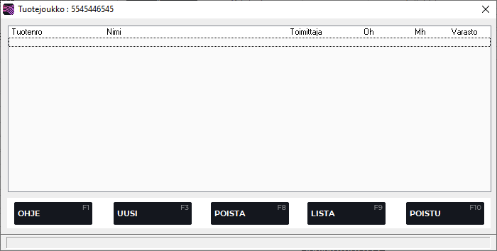Aloita uuden joukkotuotteen perustaminen painamalla F3 Uusi tuoteruudulla.