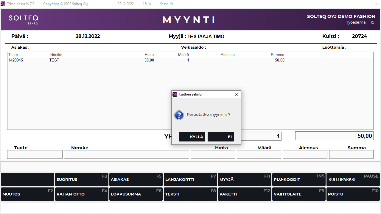 Paina F10 niin monta kertaa että Peruutatko myynnin-ruutu tulee näkyviin.