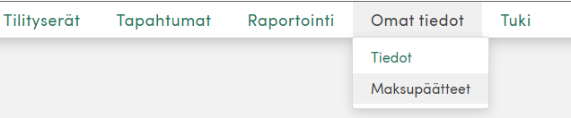 Kirjaudu sisään sivustolle, ja valitse valikosta Omat tiedot → Maksupäätteet.