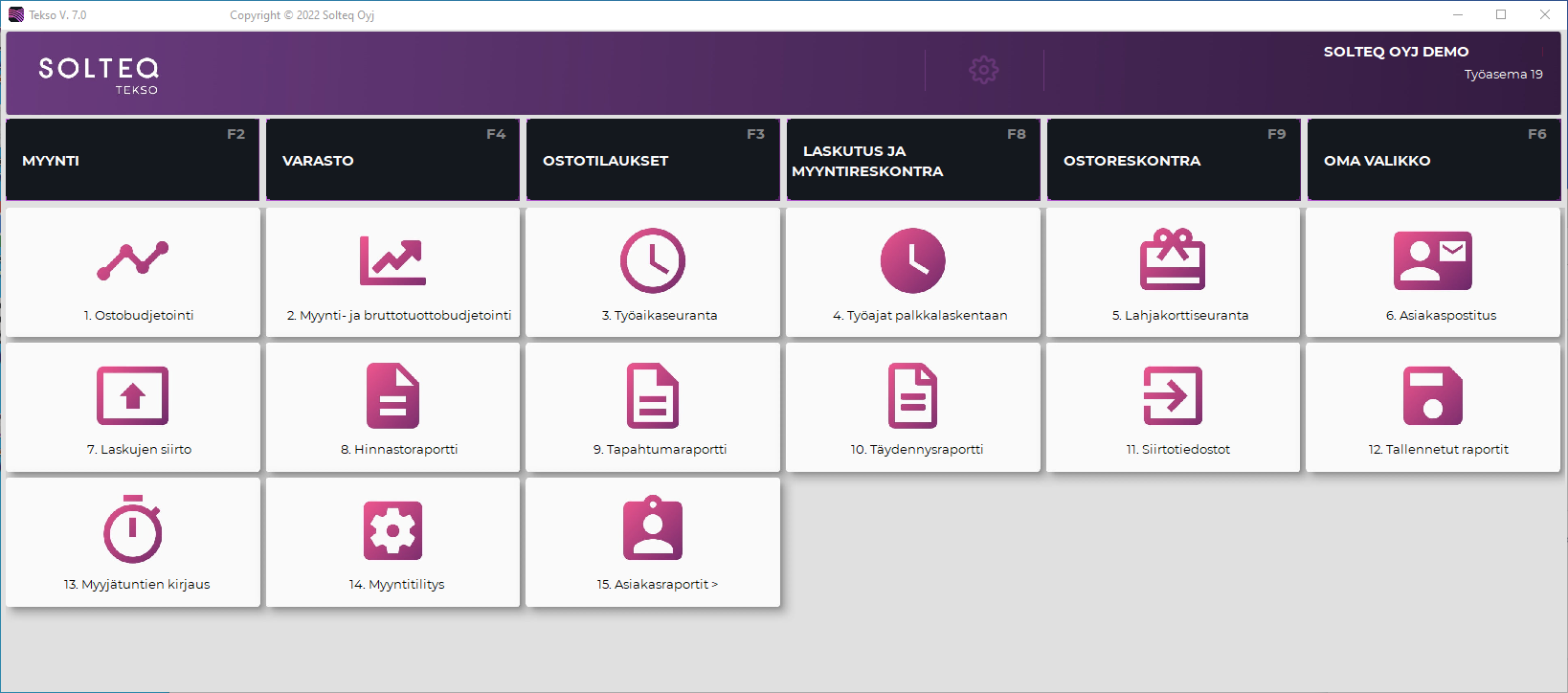 Asiakasraportit: asiakkaille tehtyjen tapahtumien raportointi sekä ostohyvitysten raportointi bonusohjelman ollessa käytössä.