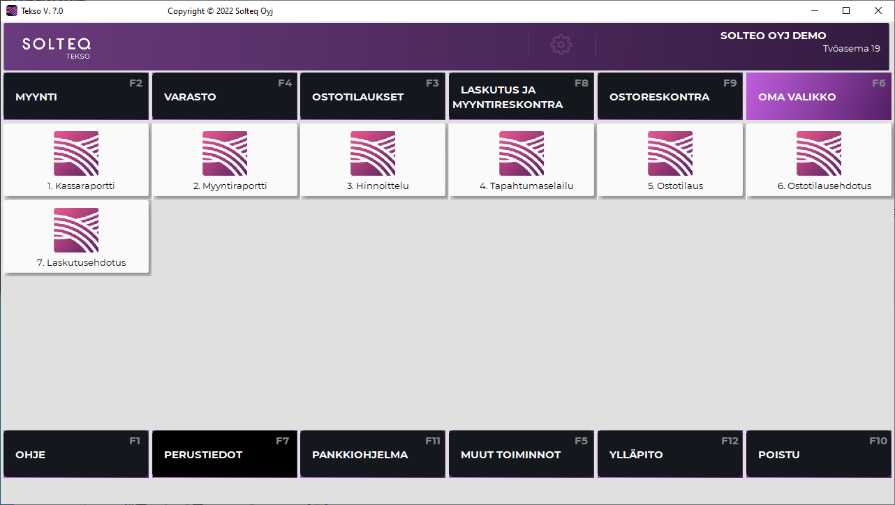 Kun avaat oman valikon F6 Oma valikko-painikkeella, niin kyseinen Kassaraportti -toiminto on tallentuneena listalla.