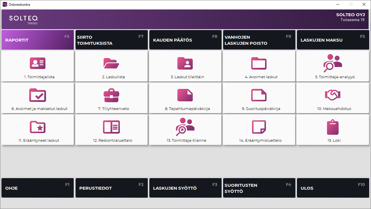 Ostoreskontrasta on tulostettavissa useita raportteja: