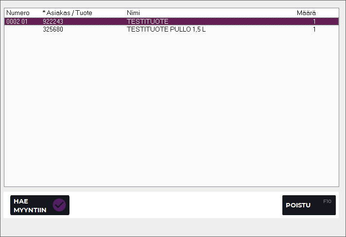 Paina kassassa Enter. Valitsemasi tuote siirtyy käsittelyriviltä myyntirivinäkymän yläosaan.