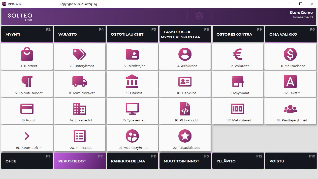 Parametrit-toiminto on pääasiassa vain Solteqin käyttöön. Tiedot määritellään Solteqin toimesta asennuksen yhteydessä.