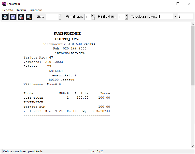 Tarjous on nyt luotu, ja sitä voidaan tarkastella kuittien selauksen kautta. Tarjouksen käsittely jatkuu siten, että tarjous muutetaan myyntitilaukseksi.
